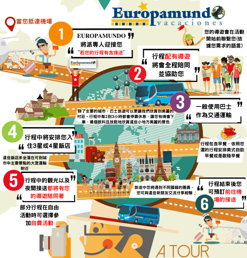 巴士旅遊、中文導遊、申根保險、飯店和自助早餐、導遊司機小費